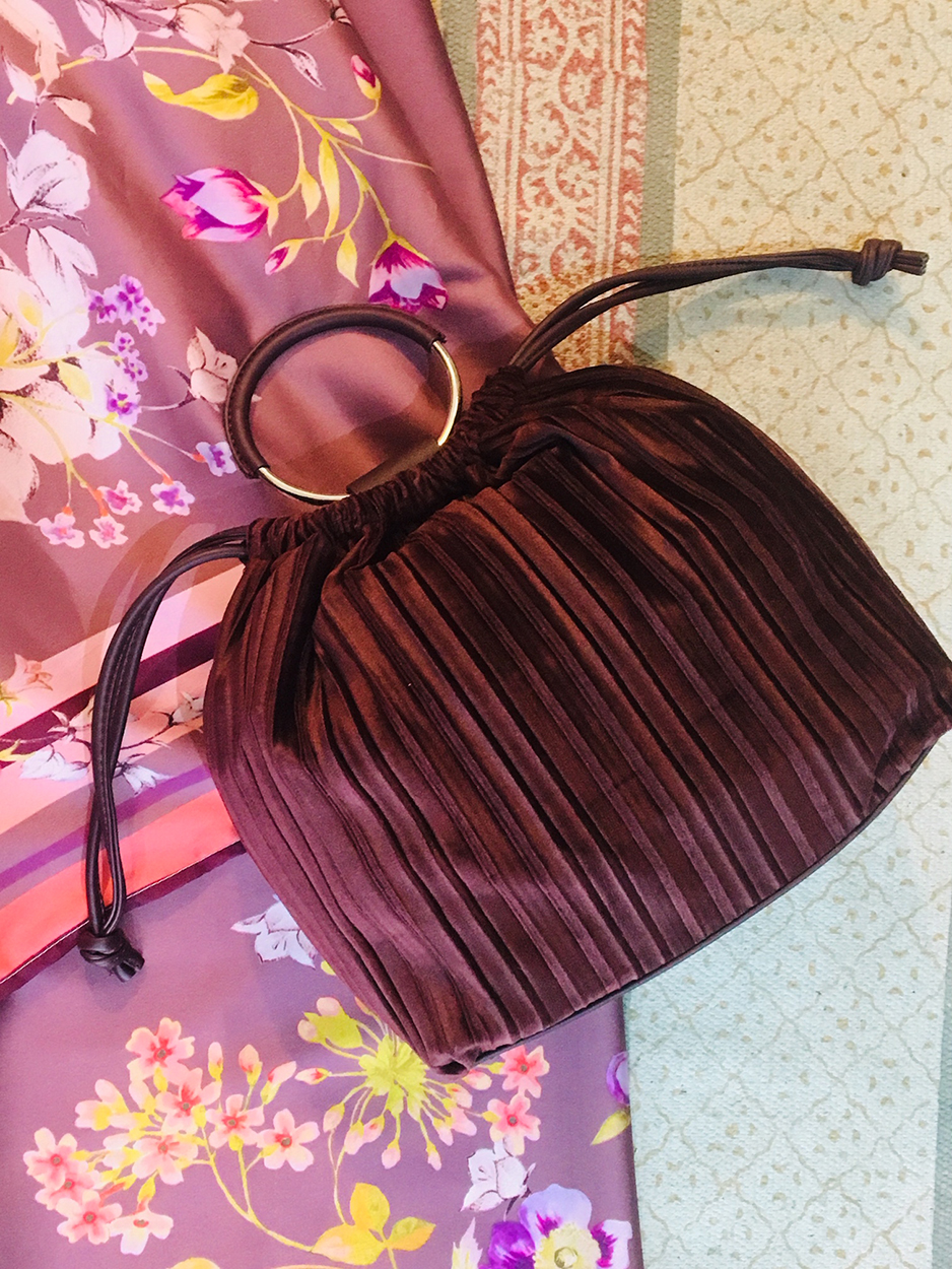 Ολοκλήρωσε το look σου μ’ ένα βελούδινο τσαντάκι Ιταλικής προέλευσης, του brand Giorgia & Johns. Στο χρώμα του κρασιού (wine), έχει εσωτερική τσέπη κι ένα κρίκο για χερούλι, που είναι επενδυμένο με δέρμα. Έχει όμως και extra λουράκι για να το μεταμορφώνεις σε τσαντάκι ώμου.
