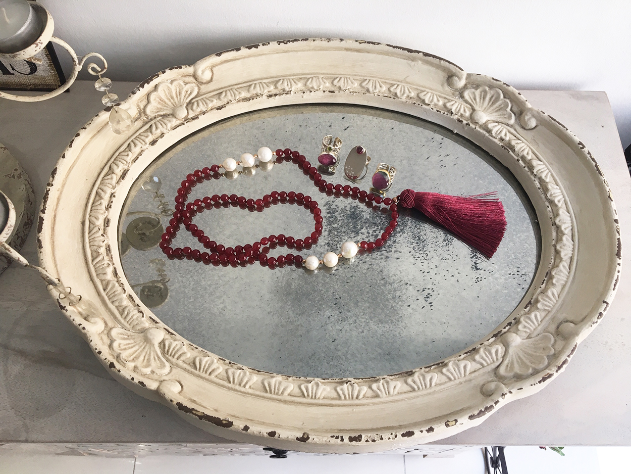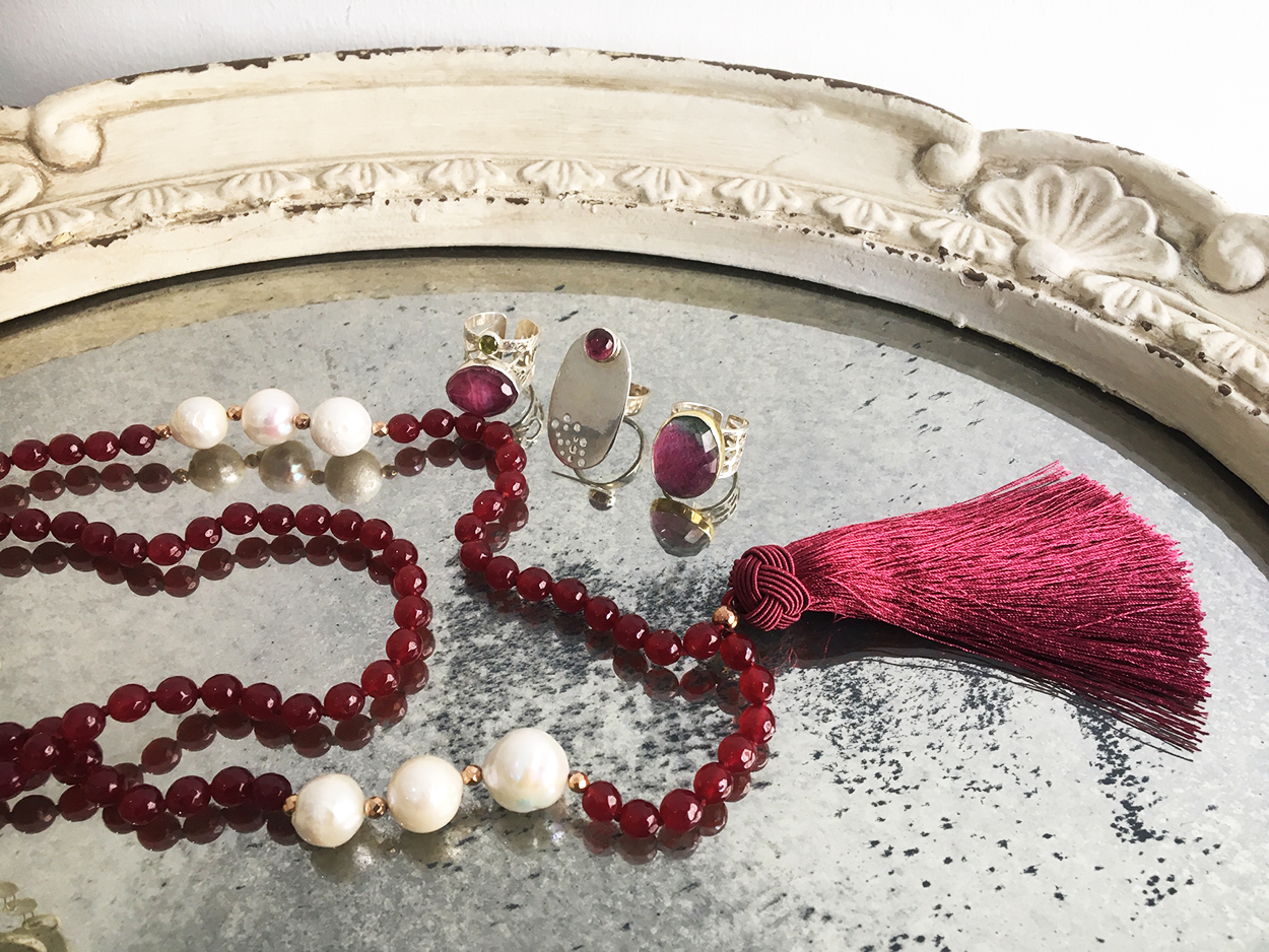 Συμπλήρωσε το outfit σου μ’ ένα statement κολιέ, που θα σε συνοδεύσει στις βραδινές σου εξορμήσεις! Το χειροποίητο κολιέ που σου προτείνουμε, είναι φτιαγμένο με αχάτη Ruby, μαργαριτάρια και καταλήγει σε μεταξωτή φούντα. Κι αν θέλεις, επιλέγεις και κάποιο από τα χειροποίητα δαχτυλίδια της Μίκας Γριβάκη, της ελληνίδας σχεδιάστριας που αντιπροσωπεύει η THE wardrobe αποκλειστικά.