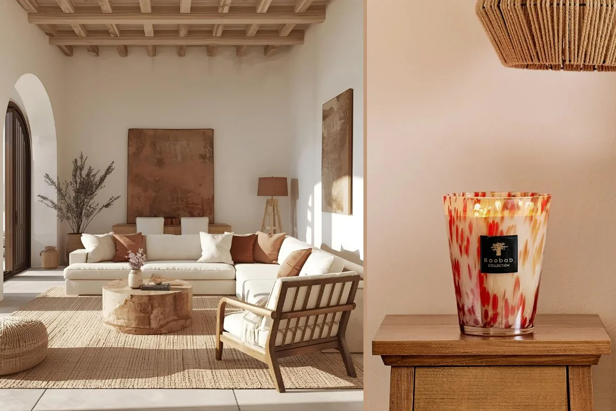 Αυτό το στιλ διακρίνεται για την πλούσια αισθητική με έμφαση στη χειροτεχνία και την πολιτιστική κληρονομιά. Ένας χώρος που ακτινοβολεί αυθεντικότητα, και πολυπολιτισμικότητα… Χειροποίητα υφαντά, σκαλιστό ξύλο και έπιπλα, κεραμικά, γήινες αποχρώσεις, αντικείμενα ταξιδιών συνθέτουν έναν χώρο γεμάτο βάθος, αυθεντικότητα και παγκόσμιες αναφορές. Ένα σπίτι που μοιάζει συλλεκτικό, γεμάτο ιστορίες και χαρακτήρα… Το κερί και το diffuser Baobab εδώ λειτουργούν ως «γέφυρα» ανάμεσα στην αισθητική και τον πολιτισμό… Αντικείμενα που μοιάζουν με συλλεκτικά έργα τέχνης… Το άρωμα; Μπαχαρωμένο κεχριμπάρι, oud ή ζεστή ρητίνη – βαθιές νότες που μεταφέρουν στο σπίτι την αίσθηση διαφορετικών ηπείρων. Η φλόγα του Baobab φωτίζει τον χώρο με ότι σημαίνει «παράδοση», «χειροτεχνία», «ιστορία». Εδώ το κερί ή το diffuser δεν είναι απλώς ένα διακοσμητικό αντικείμενο… Είναι έκφραση.♦ Το φυσητό γυαλί των κεριών SAND SILOLI σε αποχρώσεις μπεζ και καφέ, έχει διαγώνιες γραμμές που σχηματίζονται από μικρές, τυχαίες οργανικές κηλίδες. Κάθε κομμάτι είναι μοναδικό, καθώς το υλικό χρωματίζεται ανάλογα με την ανάσα του τεχνίτη. Το ξηρό ξυλώδες άρωμα από κέδρο και σπόρους τόνκα θα σε ταξιδεύει σε χώρες του ισημερινού, με μια νότα λάιμ που προσθέτει μια απρόσμενη φρεσκάδα. Η εκλεπτυσμένη οσφρητική σύνθεση εναρμονίζεται τέλεια με το γυαλί, δημιουργώντας μια ισορροπία μεταξύ διακοσμητικού και αρωματικού αντικειμένου. Και το diffuser TOTEM SAND SILOLI διακρίνεται για την ξυλώδη αρωματική νότα του κέδρου και του τόνκα, με μια πινελιά λάιμ που χαρίζει στο άρωμα μια ασυνήθιστη φρεσκάδα. Τα λεπτά αρώματά του βρίσκονται σε απόλυτη αρμονία με αυτή του γυαλιού, δημιουργώντας μια όμορφη ισορροπία ανάμεσα στο διακοσμητικό και στο αρωματικό αντικείμενο. Μοναδικό…!