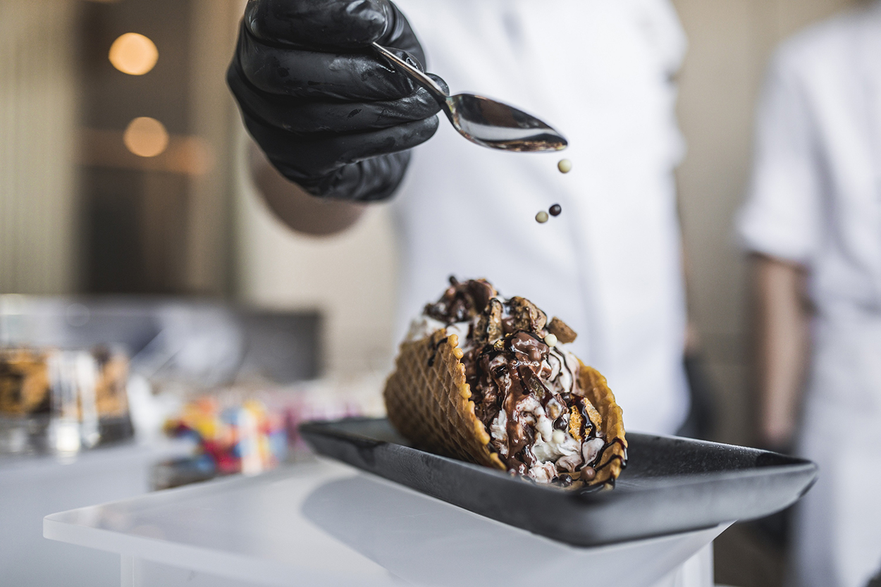 Ο δημιουργικός Pastry Chef Δημήτρης Χατζηγιάννης και η ομάδα του έδωσαν και φέτος έμφαση στην ποιότητα και τη φαντασία. Με μαεστρία ετοίμασαν για την Εβδομάδα που γιορτάζει το παγωτό, ένα υπέροχο μωσαϊκό συνδυασμών και γεύσεων, με φίνες πρώτες ύλες. Η εκπληκτική συλλογή στο μενού που ετοίμασε το Colors Café ειδικά για την Εβδομάδα Παγωτού, περιλαμβάνει τη μοναδική εμπειρία Gelato με συνδυασμούς που δημιουργούμε εμείς, επιλέγοντας τις πιο αγαπημένες μας γεύσεις. Τη συλλογή του μενού συμπληρώνουν οι μοναδικές παγωτοσυνθέσεις, όπως η Pavlova, το Essential (με Ruby-Ruby Chocolate) και το Chocolate Caramel.