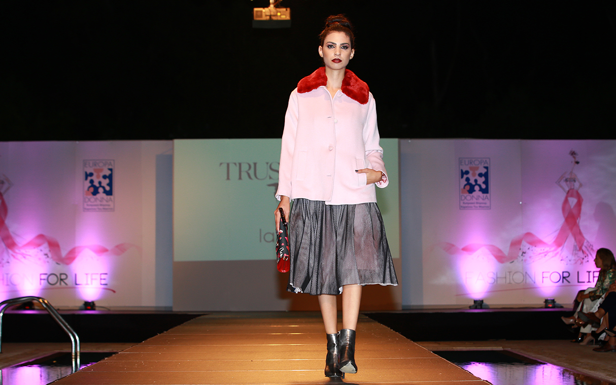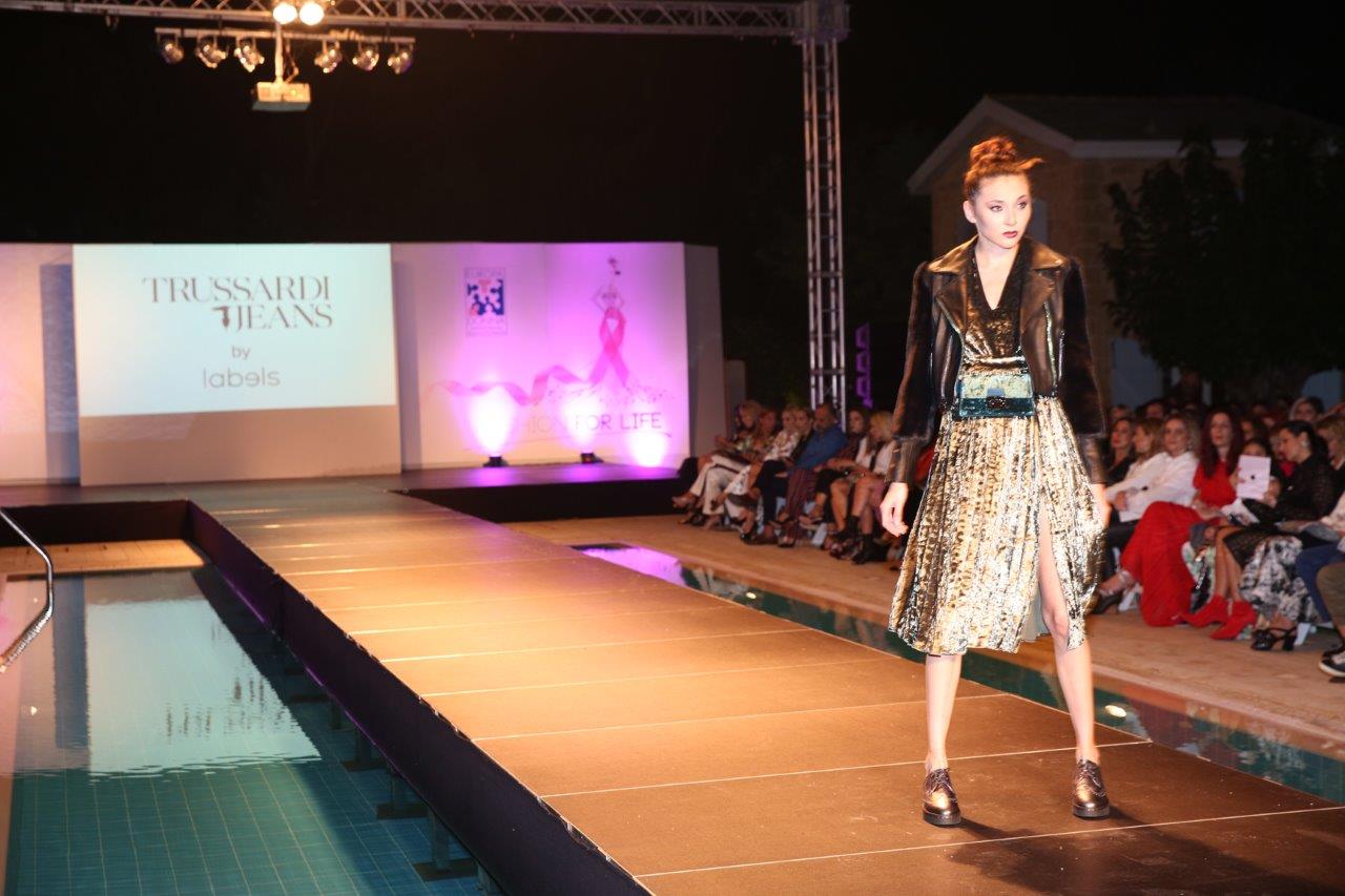 Και καταγράψαμε όλα όσα ενδιαφέροντα points δεν θα είχατε την ευκαιρία να παρακολουθήσετε – έστω κι αν βρισκόσασταν στο front row. Οι make up artists της ομάδας των Beauty Line είχαν αναλάβει δράση και δημιουργούσαν το μοναδικό look που είχε σχεδιαστεί εκ των προτέρων. Οι κομμωτές της L’Oreal είχαν το δικό τους έργο να επιτελέσουν, ετοιμάζοντας συνολικά το hair look των 18 μοντέλων που λάμβαναν μέρος στο show. Τελικά, γύρω στις 6,30 το απόγευμα όλες τους ήταν έτοιμες, και «μετακόμισαν» πίσω από την σκηνή για να αρχίσουν τη διαδικασία της προετοιμασίας τους για το catwalk. Από την προηγούμενη, η στυλίστρια Χριστιάνα Χατζηκυριάκου είχε κάνει την προεργασία της, και συνέβαλε με τη δική της εμπειρία για να επιλεγούν τα πιο εντυπωσιακά outfits της μπουτίκ Labels που θα λάμβανε μέρος στην επίδειξη. Βέβαια, εκείνη την ώρα, ο αναβρασμός που επικρατούσε στα παρασκήνια ήταν οργιώδης. Μικρολεπτομέρειες που δημιουργούσαν άγχος και οι δείκτες του ρολογιού έτρεχαν… Παρόλα αυτά, όταν ήρθε η στιγμή της έναρξης, όλοι ήταν on time. Πάντως, η ιδιοκτήτρια της Labels boutique, η Μαριλένα Ιερομονάχου, είχε την ευκαιρία να συναντήσει τον πρέσβη της Ιταλίας, τον Mr. Andrea Cavallari και τη σύζυγό του Katerina, μια και φιλοξενούσαν στο σπίτι τους το φιλανθρωπικό fashion show. Αξίζει να σημειώσουμε ότι η Ιταλία είναι άμεσα συνδεδεμένη με την Europa Donna, καθώς ο μη κερδοσκοπικός οργανισμός ιδρύθηκε το 2000 από έναν ιταλό γιατρό στο Μιλάνο, και από τότε αριθμεί 47 χώρες μέλη, με τις οποίες μοιράζεται κοινούς στόχους γνώσεις και δράση. Πάντως, όταν έφθασε η σειρά του Trussardi Jeans, που αντιπροσωπεύεται από τη Labels boutique, τα εννέα καλλίγραμμα μοντέλα είχαν την τύχη να φορέσουν το αυθεντικό στιλ της ιταλικής ultra chic και παιχνιδιάρικης pop μόδας του φθινοπώρου. Και εννοείται, όλοι ανέμεναν ότι η Labels boutique θα παρουσίαζε ένα από τα πιο κομψά κομμάτια της επίδειξης. Και το τελικό αποτέλεσμα της συλλογής Trussardi Jeans που υπογράφει η creative director Gaia Trussardi, ήταν πραγματικά πολύ εντυπωσιακό.