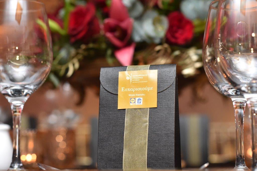 Μέγας Χορηγός του Δείπνου Αγάπης ήταν η Lidl Κύπρου. Από την Lidl Ελλάδας -Κύπρου, η Διευθύντρια Επικοινωνίας και Εταιρικής Υπευθυνότητας της Lidl, κα Βασιλική Αδαμίδου διαβεβαίωσε ότι η Lidl θα είναι δίπλα στον Αντικαρκινικό Σύνδεσμο Κύπρου. Ανέφερε μάλιστα, ότι θα συνεχίσουν να καλύπτουν τα έξοδα σίτισης των ασθενών του Κέντρου Ανακουφιστικής Φροντίδας «Αροδαφνούσα». Παράλληλα θα συμβάλλουν σημαντικά στο έργο του Συνδέσμου με διάφορες άλλες ενέργειες καθ’ όλη τη διάρκεια του χρόνου.