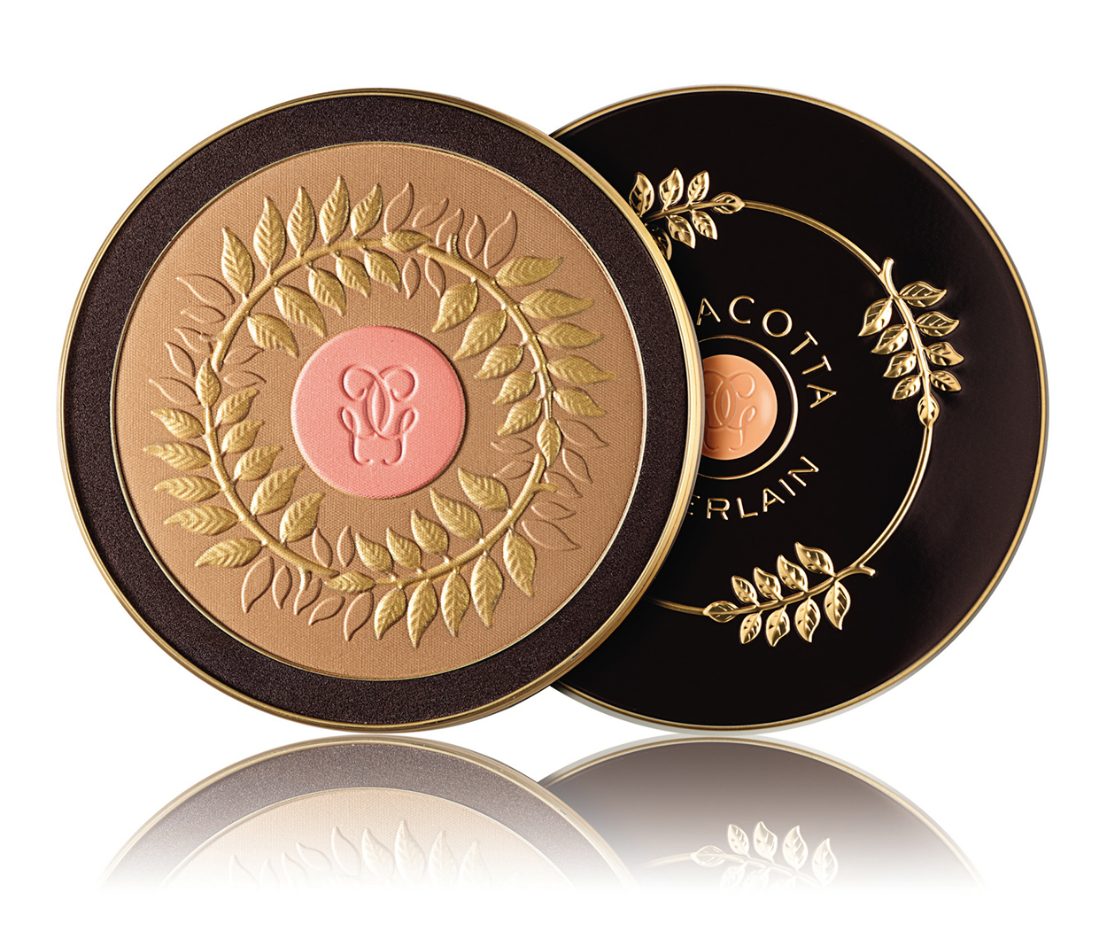 Συλλεκτική πούδρα Terracotta, σε XL μέγεθος, που υμνεί τη μούσα της πίεσης, τη Θάλεια. Κάτω από το χρυσό πέπλο της, η καρδιά της κρύβει ένα απαλό κοράλλι χρώμα, ιδανικό για να σου χαρίσει τη φωτεινή λάμψη που αναζητάς.
