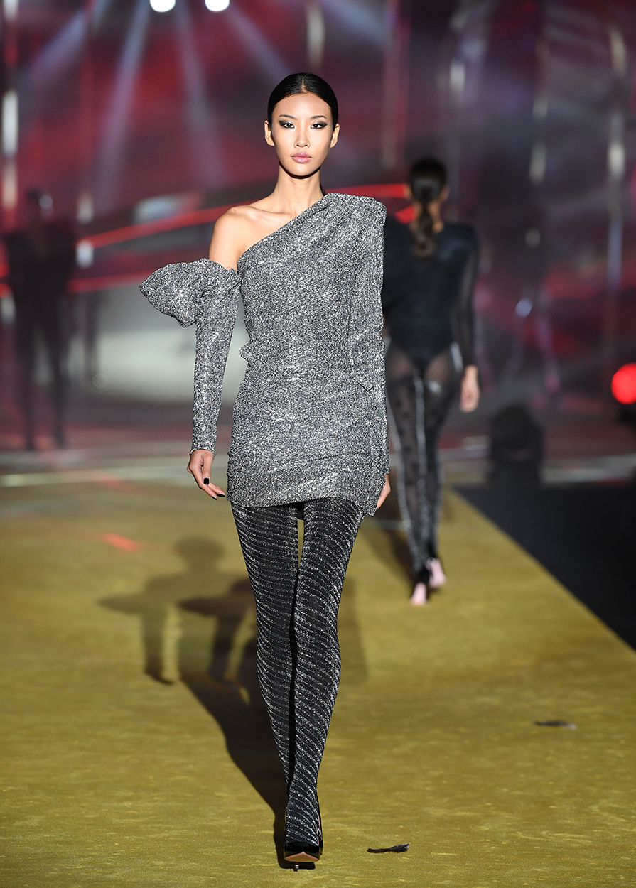 Η μεγαλύτερη τάση για αυτή την σεζόν; Τα καλσόν καλυμμένα με γράμματα, όπως τα μεγάλα logos με γράμματα CLZ ή τα γράμματα σε όλο το μήκος του ποδιού για ένα graphic δαντελένιο effect. Για τις πιο τολμηρές, παρουσιάστηκαν και καλσόν με μεταλλικές και λαμπερές υφές για ακόμα μεγαλύτερη λάμψη.