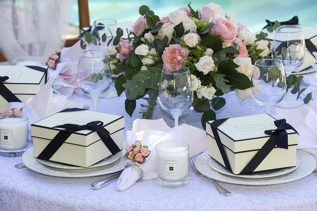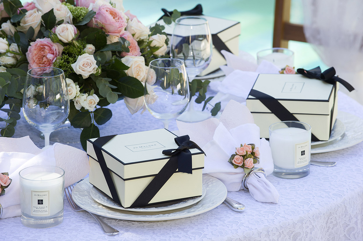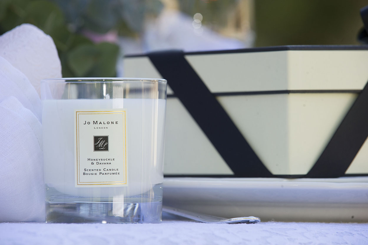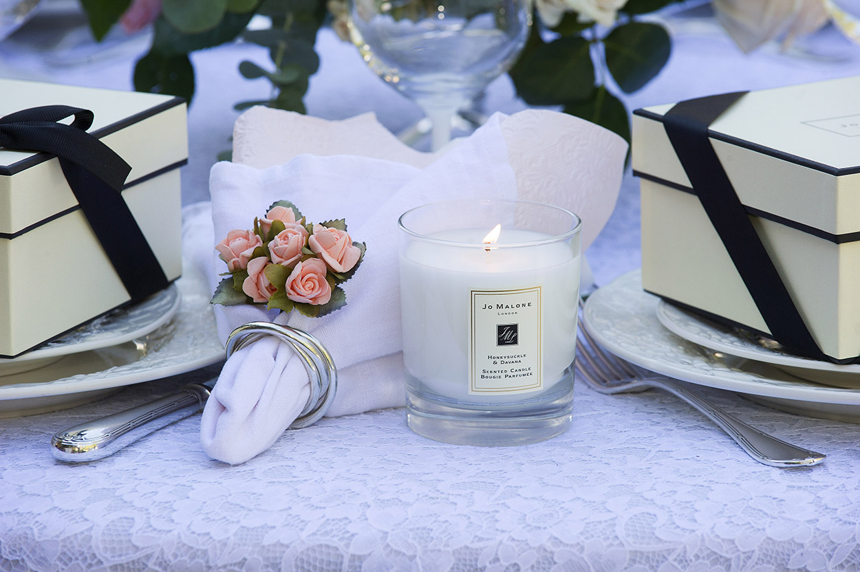 Εννοείται, πως στα τραπέζια θα περιλάβετε επίσης και τα μοναδικά, custom-made κεριά της Jo Malone London. Αρωματίζοντας τους χώρους με τα περίτεχνα κεριά που θα έχουν εξατομικευμένες μυρωδιές, θα δημιουργήσετε αξέχαστες αναμνήσεις σε όλους… Μπορείτε να χρησιμοποιήσετε διαφορετικά μεγέθη κεριών, που θα στολίσουν διακριτικά τα τραπέζια σας.