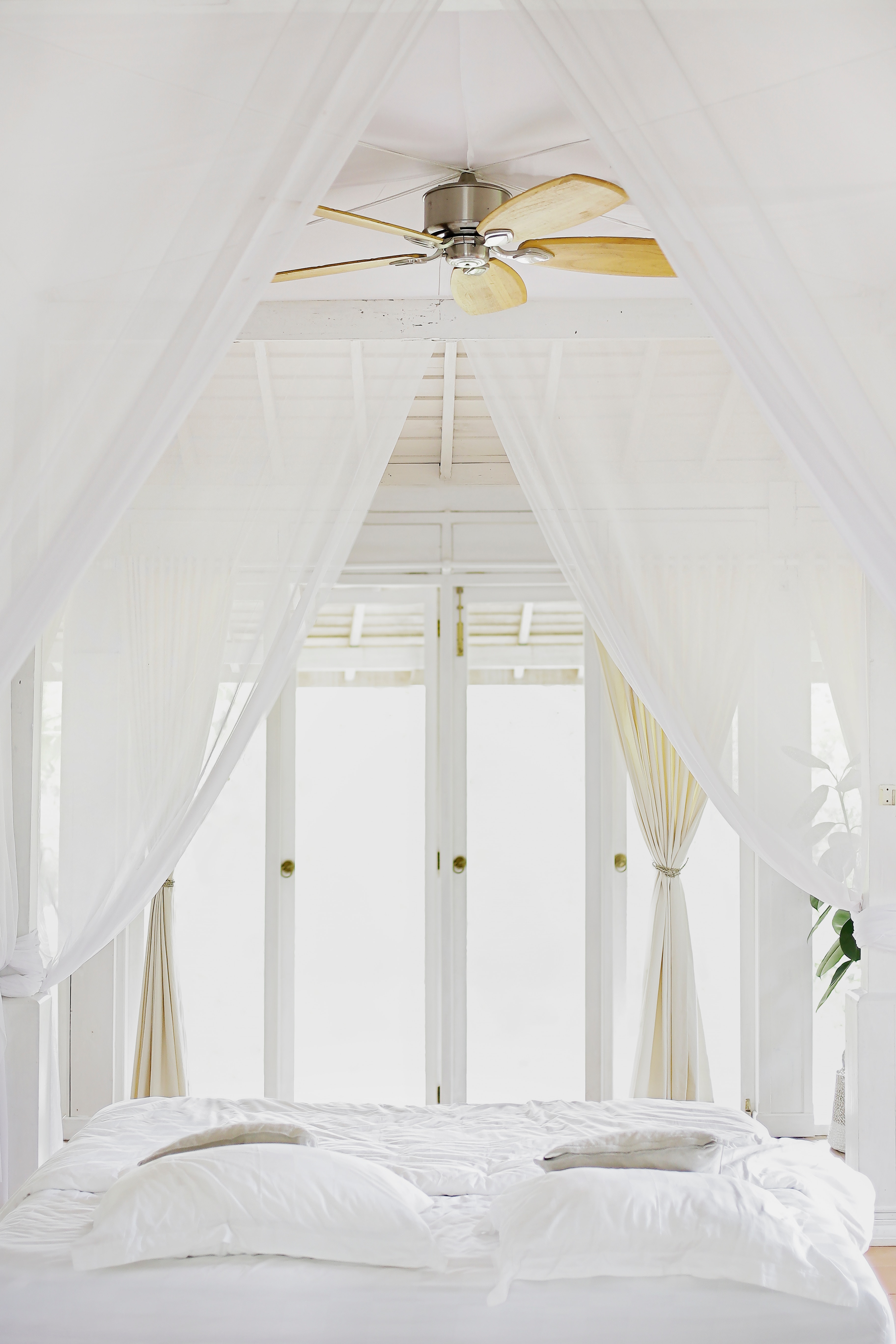 Σκέφτηκες ποτέ ότι θα μπορούσες να αξιοποιήσεις ακόμα και το ταβάνι στο υπνοδωμάτιό σου; Ε, λοιπόν, γιατί όχι; Για δες τι βρήκαμε για σένα και φρόντισε να το αξιοποιήσεις δεόντως! Έτσι, στην υπάρχουσα παροχή για φωτιστικό, προτίμησε να βάλεις στο ταβάνι του δωματίου σου έναν ανεμιστήρα οροφής με φωτιστικό- δυο σε ένα δηλαδή! Έτσι, δεν θα χρησιμοποιείς το κλιματιστικό ή αν δεν έχεις, δεν θα αναγκασθείς να βάλεις ανεμιστήρα δαπέδου, που σου τρώει αρκετό απ’ τον πολύτιμο χώρο του δωματίου σου. Βέβαια, το ίδιο ακριβώς ισχύει και για τα αμπαζούρ δαπέδου. Βάλε λοιπόν, αμπαζούρ στα κομοδίνα κι ένα καλό φωτιστικό στο ταβάνι…